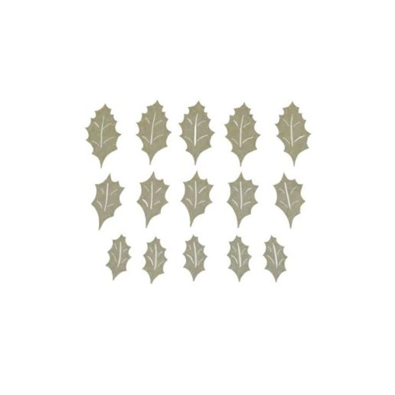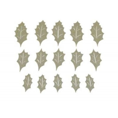 Foglio di feltro fustellato con foglie BIANCO IRIDESCENTE GLITTERATO, di varie forme e dimensioni.
