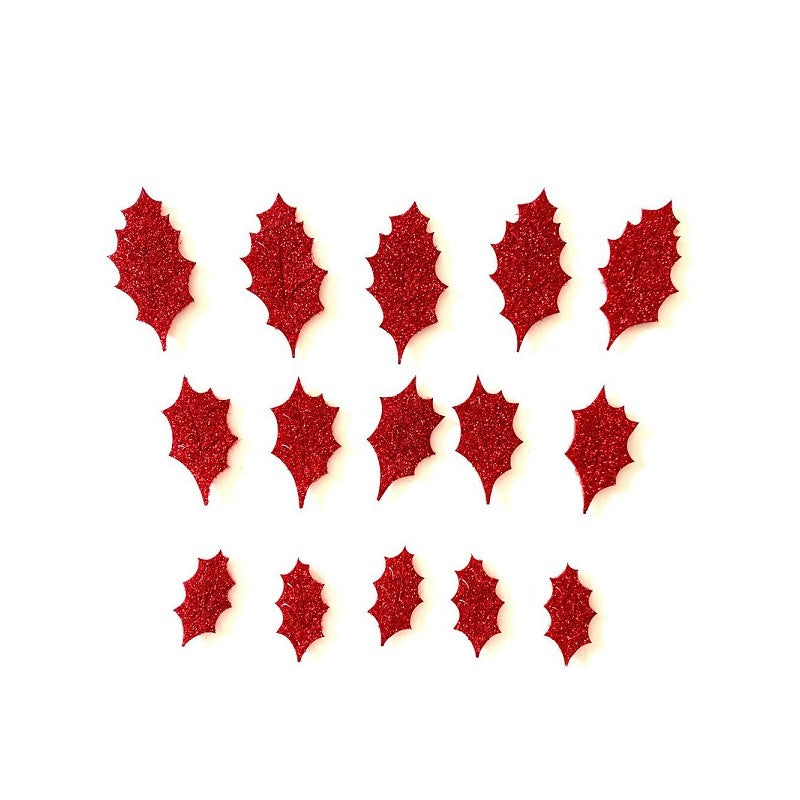 Foglio di feltro fustellato con foglie ROSSO glitterato, di varie forme e dimensioni.