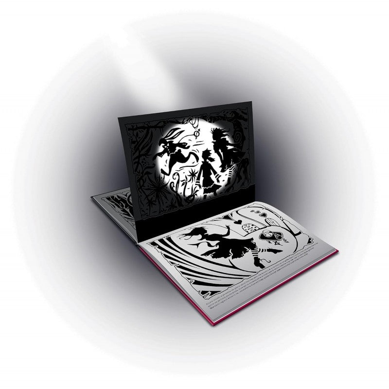 Un libro di grande fascino, da leggere al buio con l’aiuto della torcia inclusa nella confezione, che racconta, per immagini, l’avventura di Alice nel paese delle meraviglie. La potenza espressiva delle illustrazioni, realizzate in nero come silhouettes, rende la narrazione particolarmente suggestiva per i piccoli lettori. Il libro è contenuto in un’elegante confezione a cofanetto che include anche la torcia con cui leggere la storia.