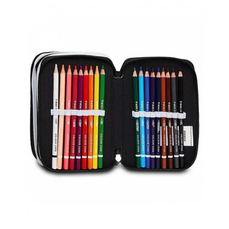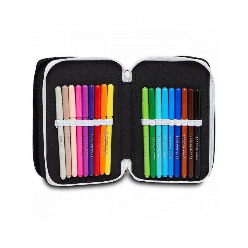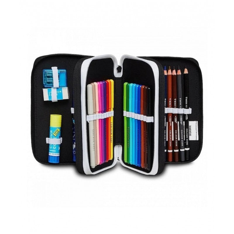 L'astuccio è dotato di una pratica apertura a 3 scomparti con cerniera, che consente di organizzare i materiali in modo ordinato e separato.