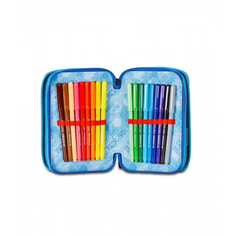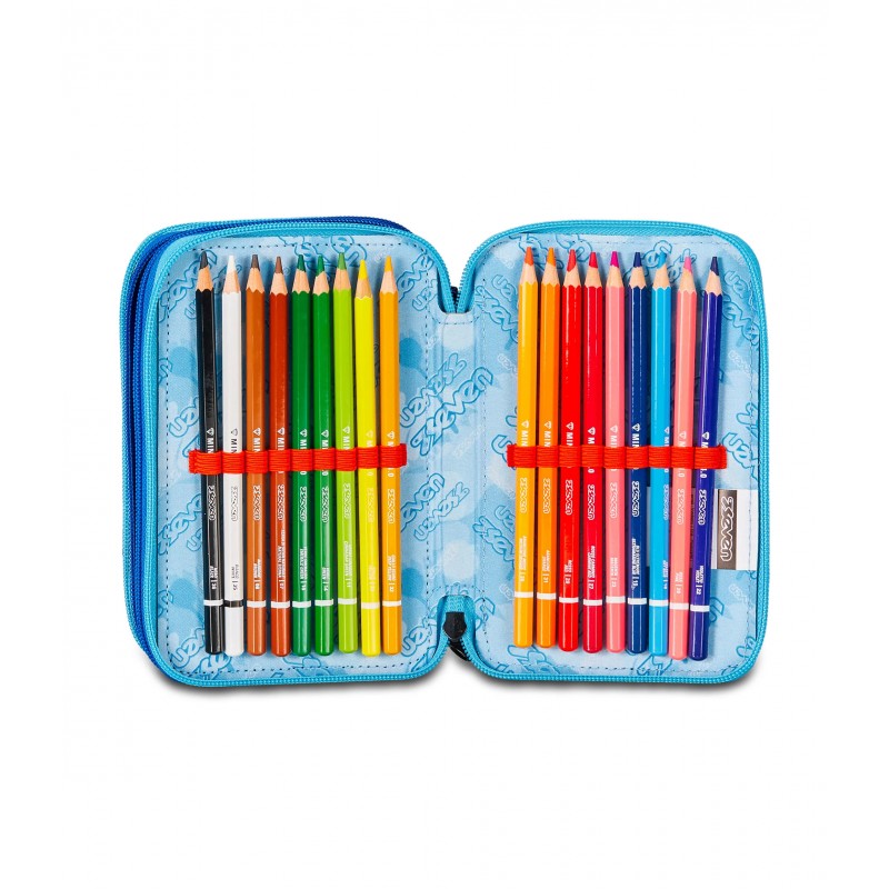 Questo astuccio Seven 3 zip ha tre scomparti in cui troverai tutto il materiale necessario per la tua giornata di scuola. A te non resta altro che abbinarlo a uno zaino o trolley Seven.