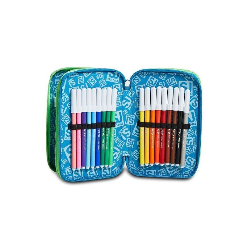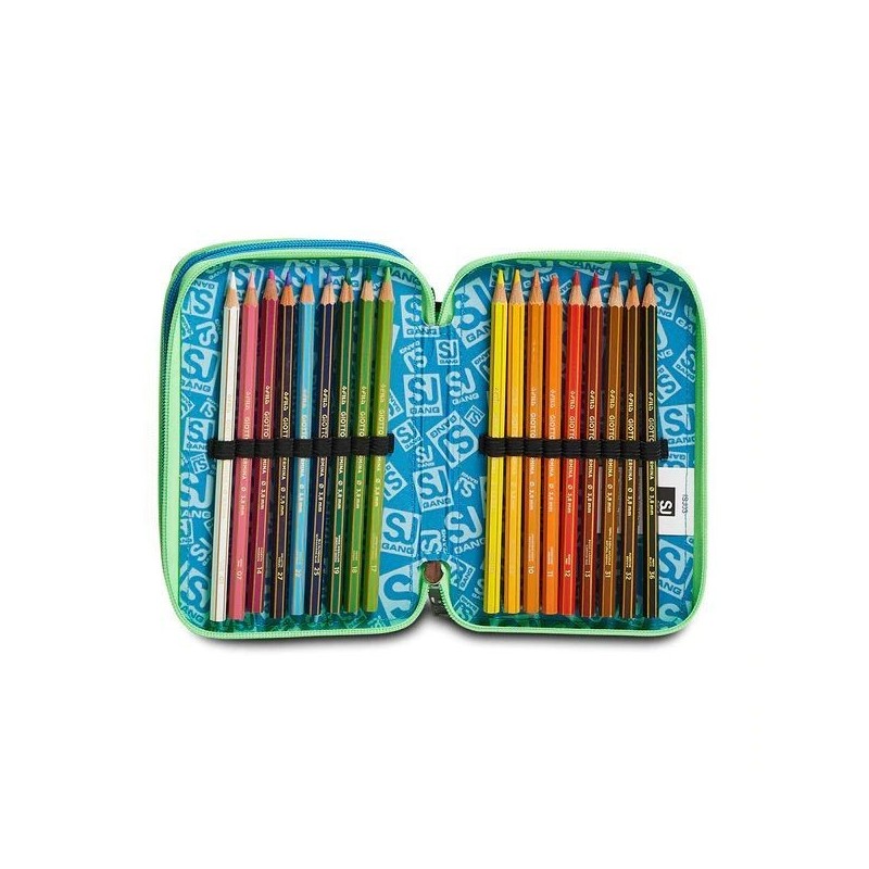 Astuccio per la scuola 3 zip SJ, con tre tasche principali chiuse da zip, complete di tutto l'occorrente per la scuola!