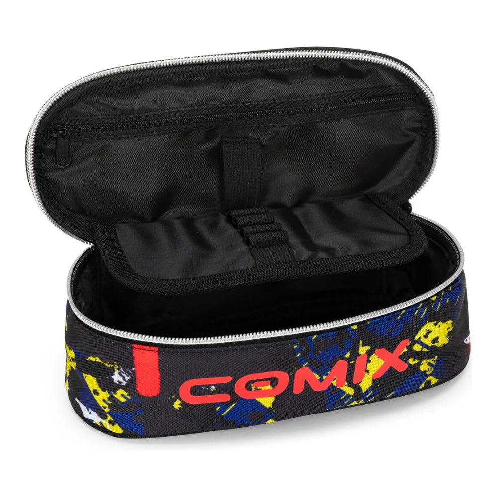L'astuccio ovale Comix è la soluzione ideale per tenere in ordine tutta la tua cancelleria a scuola, che tu sia alle elementari, medie o superiori. Il design con la grafica Skull aggiunge un tocco di stile e originalità.