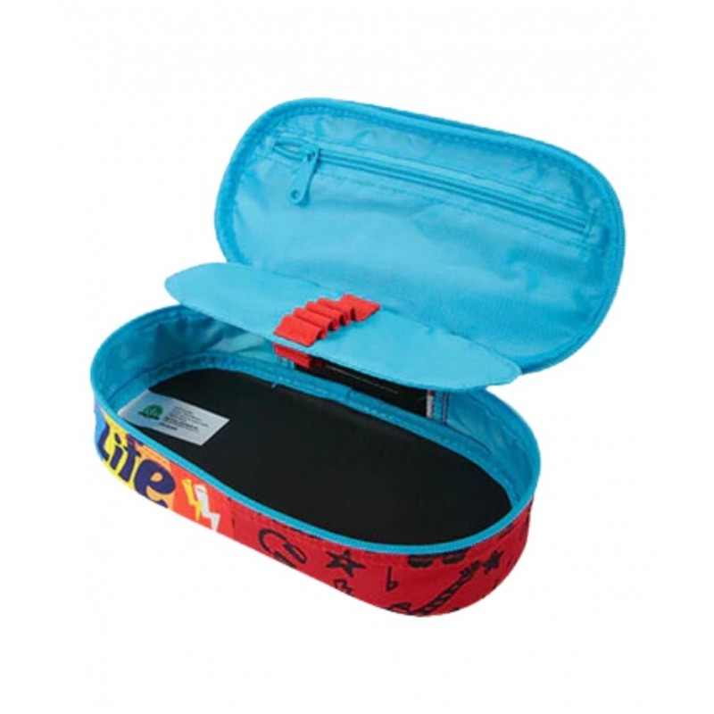 Un astuccio che ha tanto spazio per gli accessori che servono per la scuola e un taschino con zip per organizzare al meglio lo spazio.