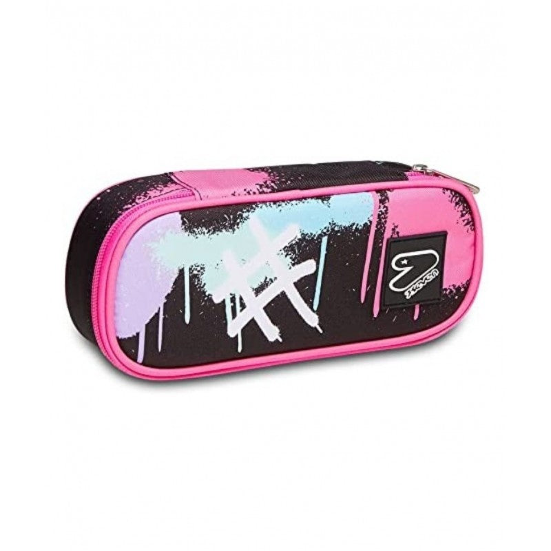 Portapenne Round Plus Girl The Double Music and Vibes Seven. Questo astuccio è dotato di elastici portapenne e un taschino interno con zip per permetterti di organizzare al meglio tutto il materiale necessario per affrontare la tua giornata di scuola. Abbinalo ad uno zaino o un trolley Seven.