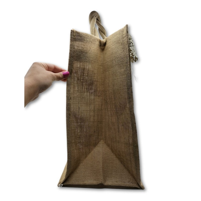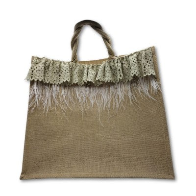Borsa In Juta Grande Realizzata A Mano Decorata Con Piume Bianche E Rifinita