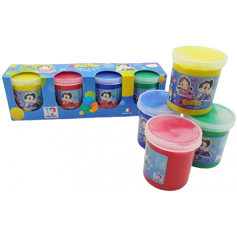 Regala ai tuoi bambini un'esperienza artistica divertente e sicura con il Set di 4 Tempere A Dita Me Contro Te !