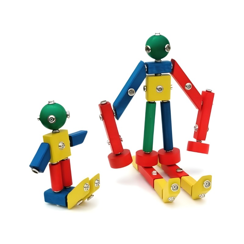 Costruzioni in Legno: Questo set è composto da 48 pezzi di legno, ognuno dei quali è progettato per unire due pezzi con un semplice “clic”. Questo tipo di connessione è facile da eseguire anche per i bambini più piccoli, il che lo rende adatto ai bambini di età prescolare.