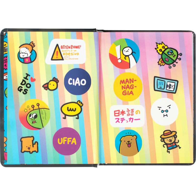 FOLLIA E GENIALITA': questo diario include 512 pagine a colori, arricchite da fumetti, giochi, barzellette strampalate, interviste poco probabili, testi stravaganti e futuristici. All'interno 2 pagine di stickers.