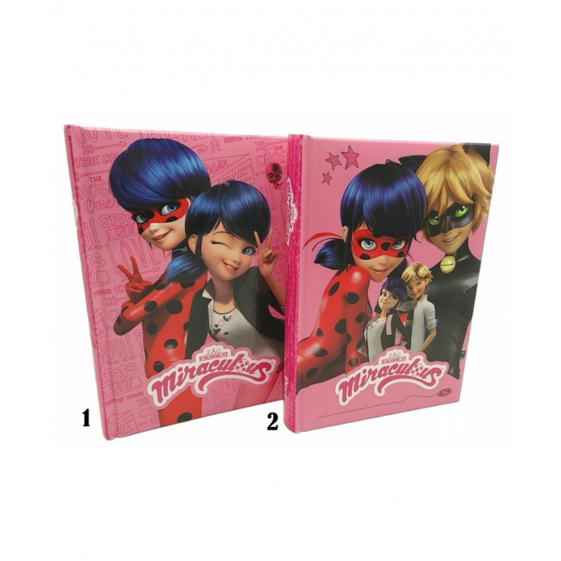 Diario 12 mesi standard Miraculous. Copertina imbottita. Plastificata lucida. Assortito in due fantasie.