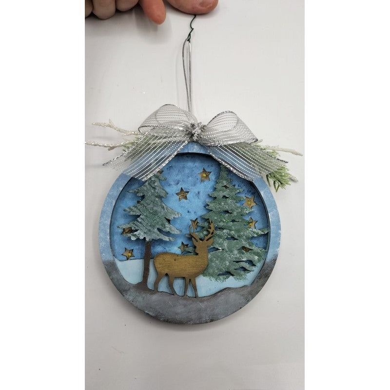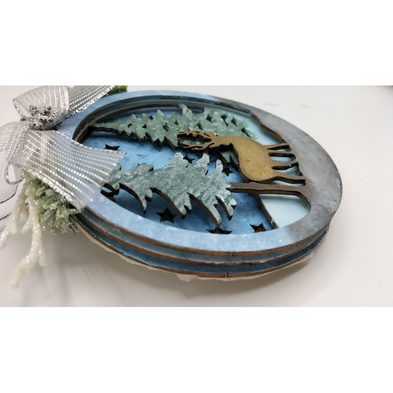 Disco Decorato A Mano - "il Cervo Nella Neve"