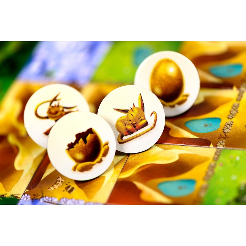 Il primo Kingdomino rivolto ai piccoli. 6 piccoli draghi graziosi e una mamma drago che governa il gioco. Nel percorso sull’isola misteriosa si dovrà scoprire il maggior numero di draghi ed evitare i gusci delle uova.