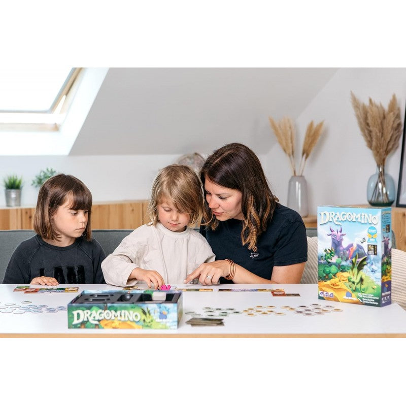 Dragomino è una rivisitazione del celebre e pluripremiato Kingdomino che permette anche ai bambini di sperimentare e divertirsi con questa versione semplificata e accattivante.