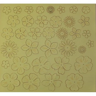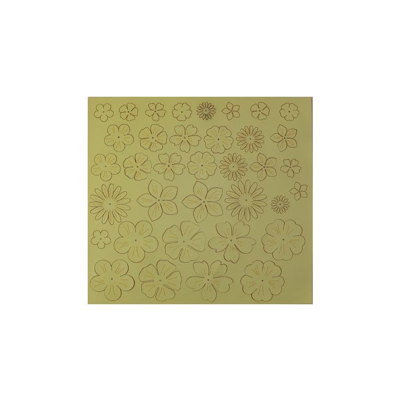 Foglio in eco pelle con fiorellini pretagliati di varie misure.
