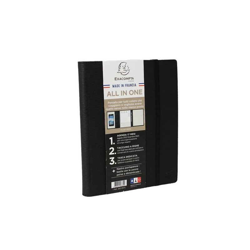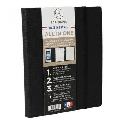 Exacompta Agenda 17 Mesi - Settimanale - Spiralata - 17x21,5 Cm - All In One - Nero - 2001081e Quovadis