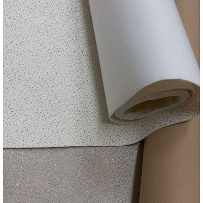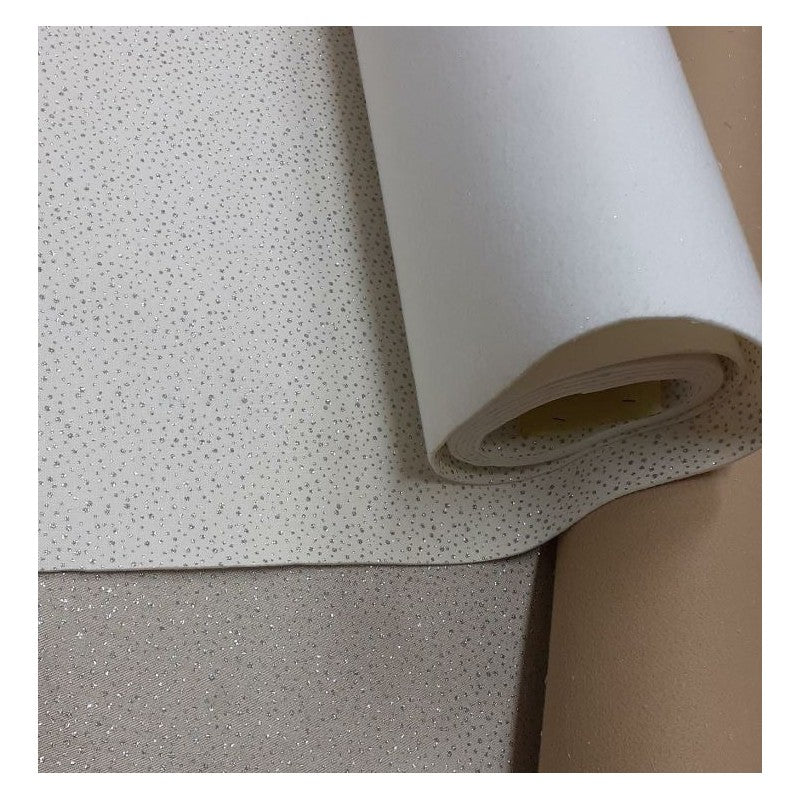 Feltro pesante nei colori beige e bianco con glitter argento. Altezza: 90cm.