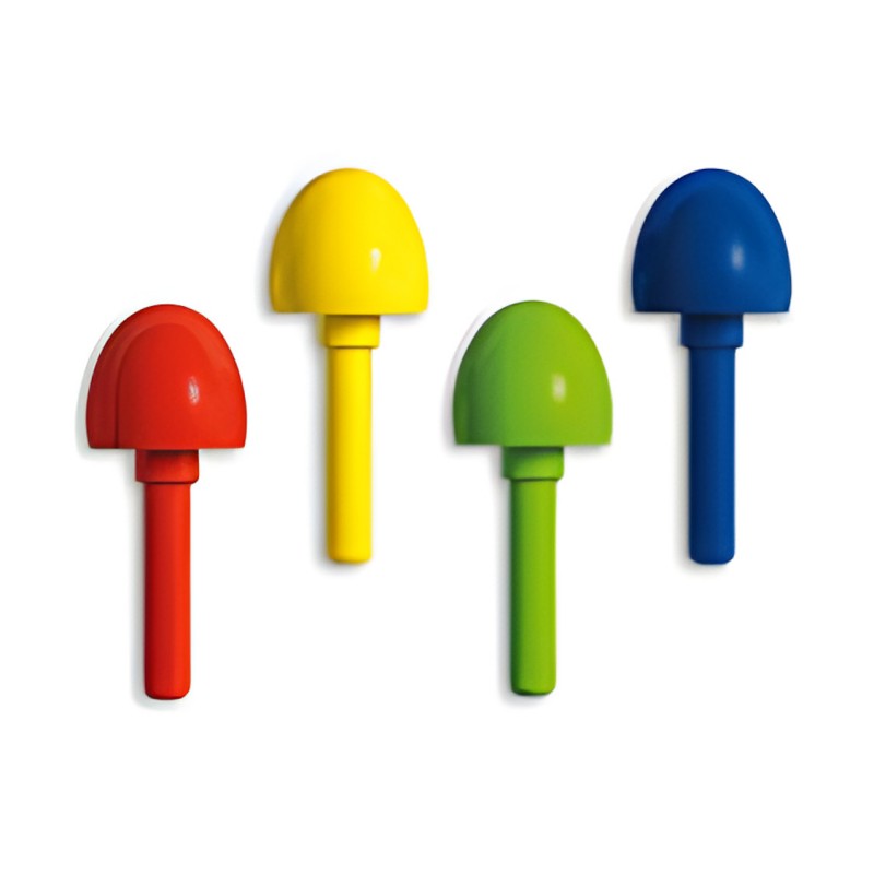 Chiodini di diametro 15 mm, in plastica infrangibile, in 4 colori: rosso, giallo, verde e blu. 1 kg (ca 1300 pz).