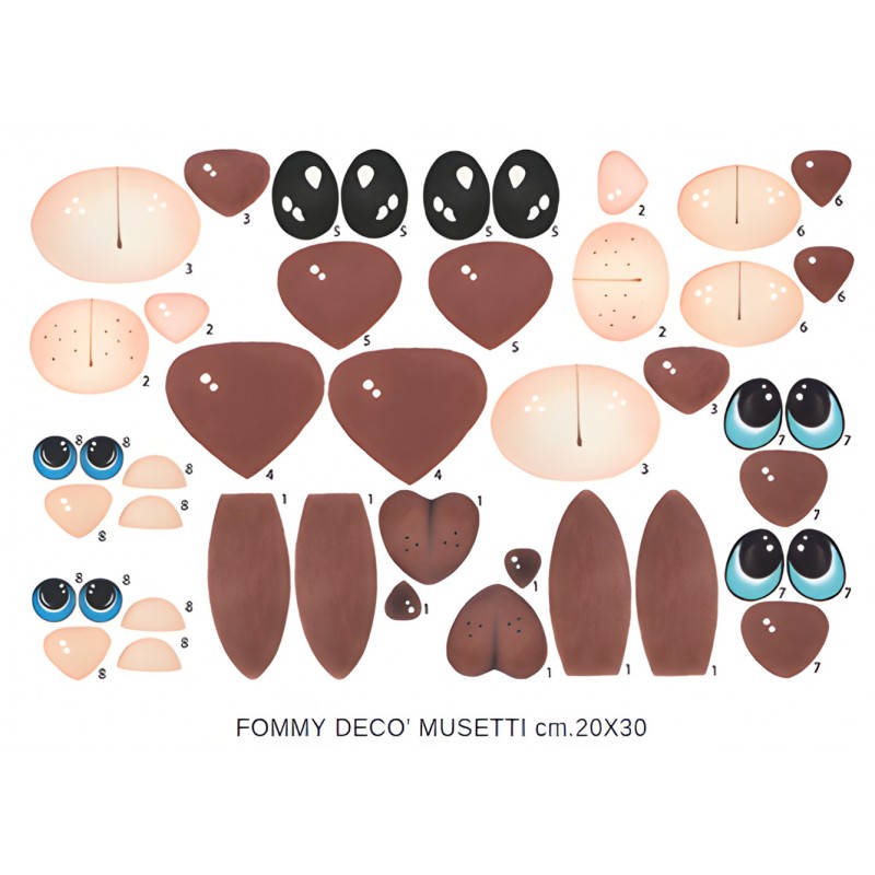 Fommy stampato con musetti di animali in varie forme, dimensioni e colori.