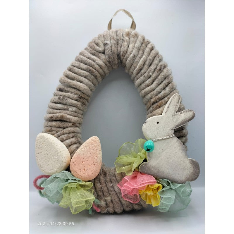 Fuoriporta in polistirolo a forma di uovo, rivestito di cordone in lana cotta