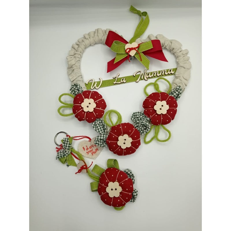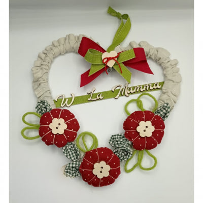 Fuoiporta a forma di cuore country con scritta "W la mamma"