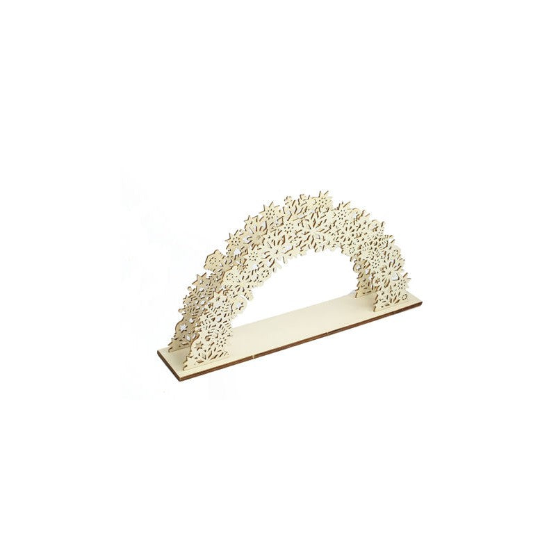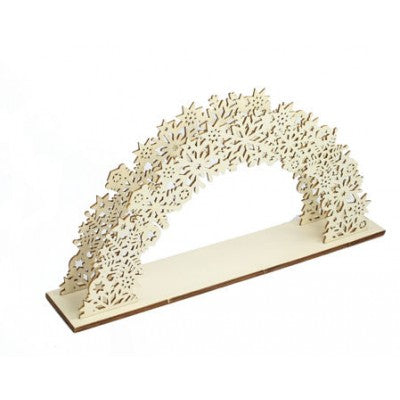 Ghirlanda in legno con fiocchi di neve disposti ad arco. La confezione comprende tre pezzi da assemblare come da foto.