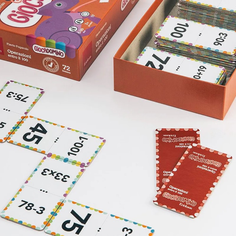 Una versione rivisitata del classico domino che permette di giocare con la matematica e di esercitarsi sulle quattro operazioni a scuola, a casa o con gli amici!