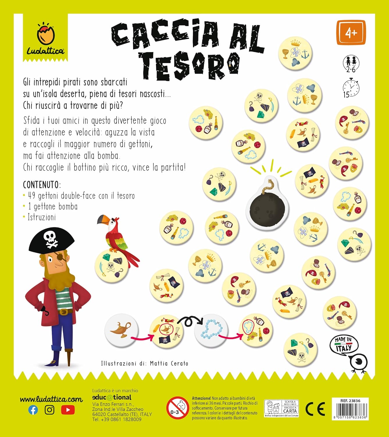 Preparati a salpare per un’avventura emozionante con Caccia al Tesoro di Ludattica, il gioco da tavolo Made in Italy perfetto per tutta la famiglia! Ideale per bambini dai 4 anni in su, questo gioco coinvolgente stimola l’attenzione, la rapidità e lo spirito di osservazione in un’atmosfera giocosa e avvincente.