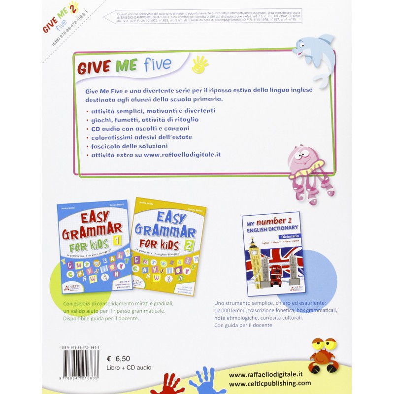 Give Me Five è una divertente serie per il ripasso estivo della lingua inglese destinata agli alunni della scuola primaria.
