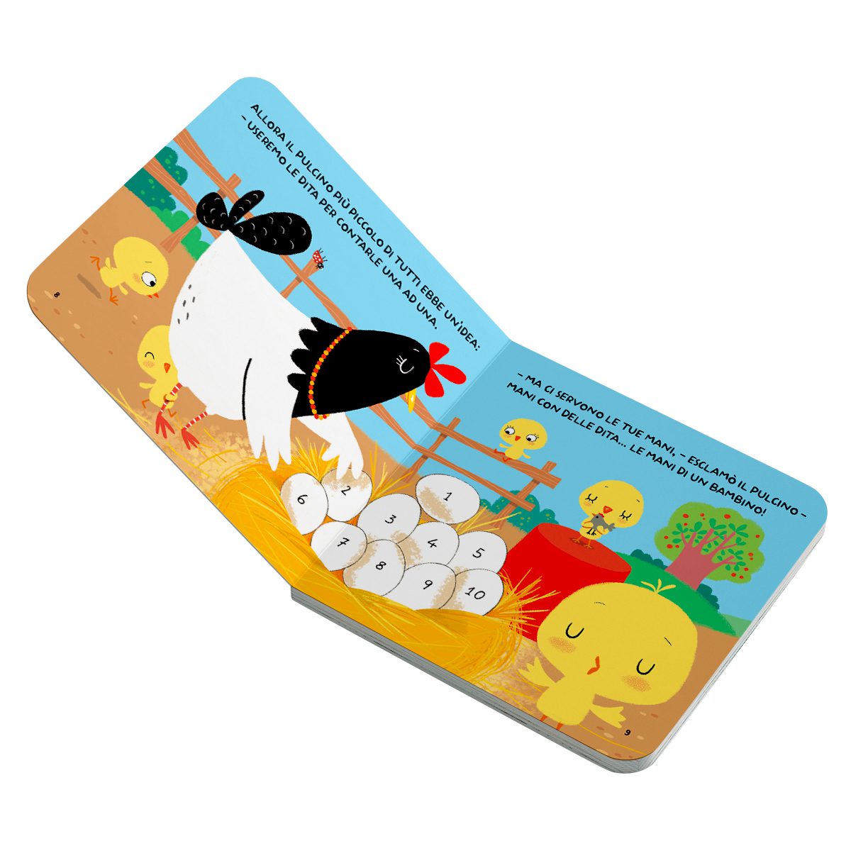 - Un libro illustrato di 10 pagine cartonate: Segui la storia della gallina Guglielmina e scopri quanti uova ha fatto.