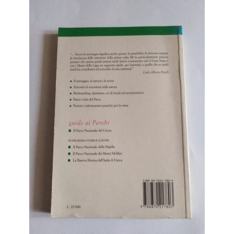 Il parco nazionale del Gran Sasso e monti della Laga: Il libro accompagna il lettore all'interno del parco, aiutandolo a scoprirne i misteri, ad ammirare la flora, a volte rara, ad incontrare gli animali che vi abitano. Suggerirà le escursini più interessanti e le passeggiate più suggestive. Il Gran Sasso è l'unico massiccio appenninico con caratteristiche alpine e dolomitiche, il più esteso altopiano dell'Appennino, l'unico ghiacciaio perenne dell'Appennino (il Calderone) e il più meridionale d'Europa. Elevato è il turismo che caratterizza l'area, anche per la presenza di importanti centri di sci da fondo. Nel parco inoltre è presente un Centro di educazione ambientale di Legambiente, già funzionante da alcuni anni con un elevato flusso di studenti.