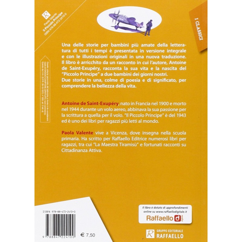 Il libro è arricchito da un racconto in cui l’autore, Antoine de Saint-Exupéry, racconta la sua vita e la nascita del “Piccolo Principe” a due bambini dei giorni nostri. Due storie in una, colme di poesia e di significato, per comprendere la bellezza della vita.