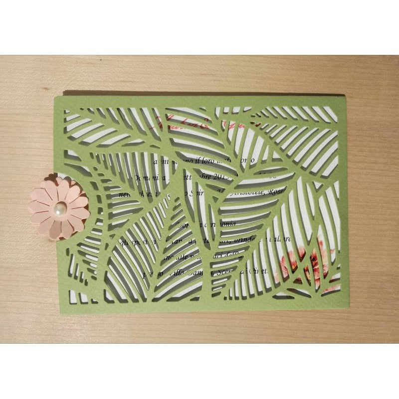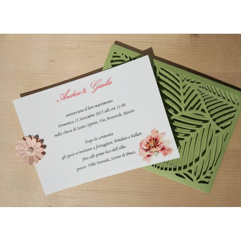 per realizzarlo, utilizziamo cartoncino con intaglio a forma di foglie e card con invito stampato da tirar fuori tramite applicazione.