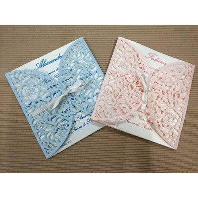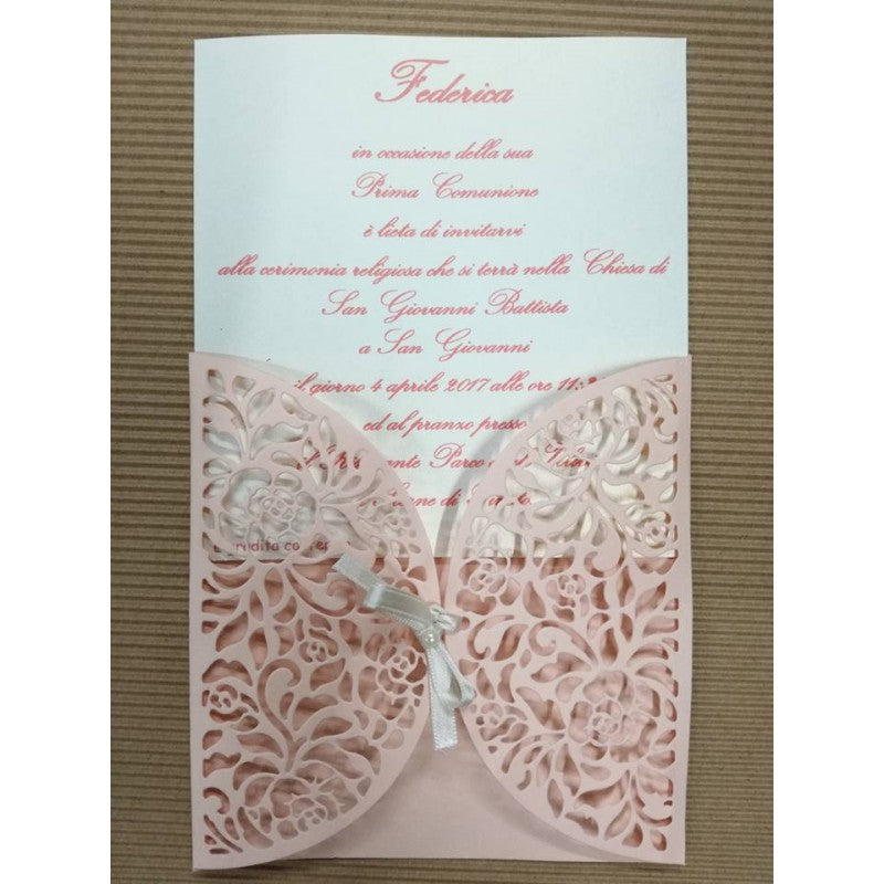 Invito personalizzabile realizzato a mano in cartoncino intagliato.