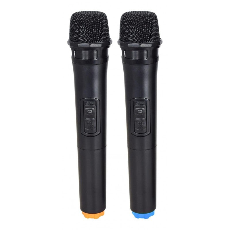 BOX AMPLIFICATO A BATTERIA, Potenza watt 120 con USB CON 2 MICROFONI PALMARI (GELATO)