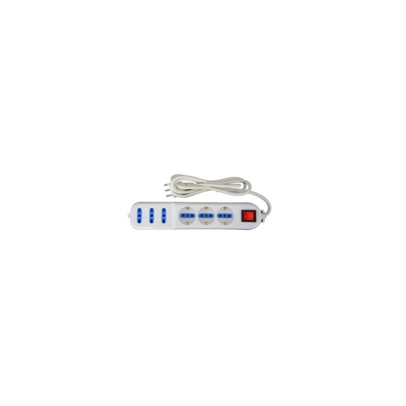 Ideale sia per uffici che per abitazioni, permette il collegamento simultaneo di 3 spine Shuko e 3 spine 10/16A. Il cavo da 1,5 mt termina con presa standard tripolare 16A. Dotata di tasto di accensione/spegnimento generale.