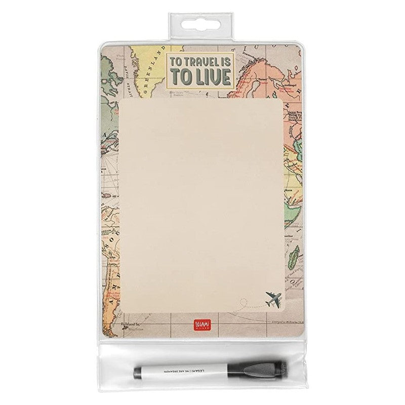 Hai mai pensato a Something to Remember, la lavagna magnetica a tema Travel di Legami? Questa lavagnetta, cancellabile a secco, ti ricorderà anche gli impegni più noiosi con il sorriso.