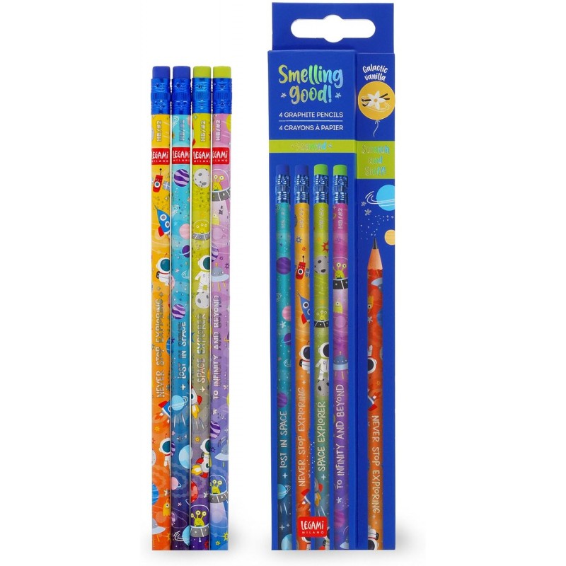Legami - Set Di 4 Matite Hb Profumate - Smelling Good, Profumo Di Vaniglia, Tema Space
