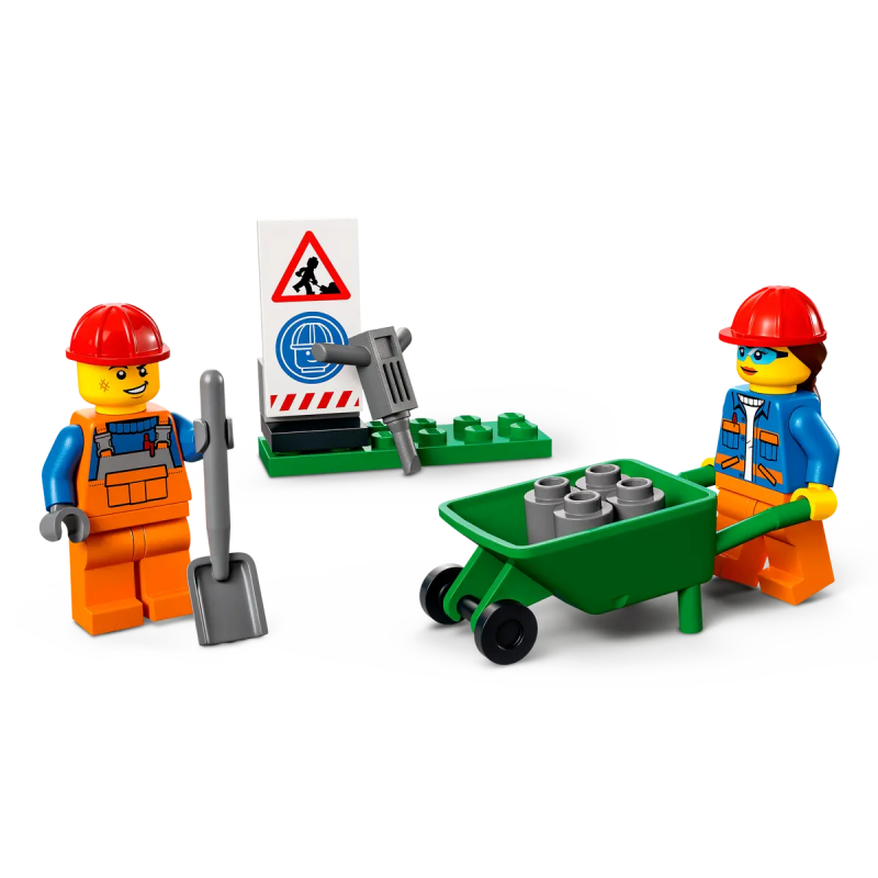 Due minifigure di lavoratori, pronte all'azione, aggiungono un tocco di realismo al gioco.