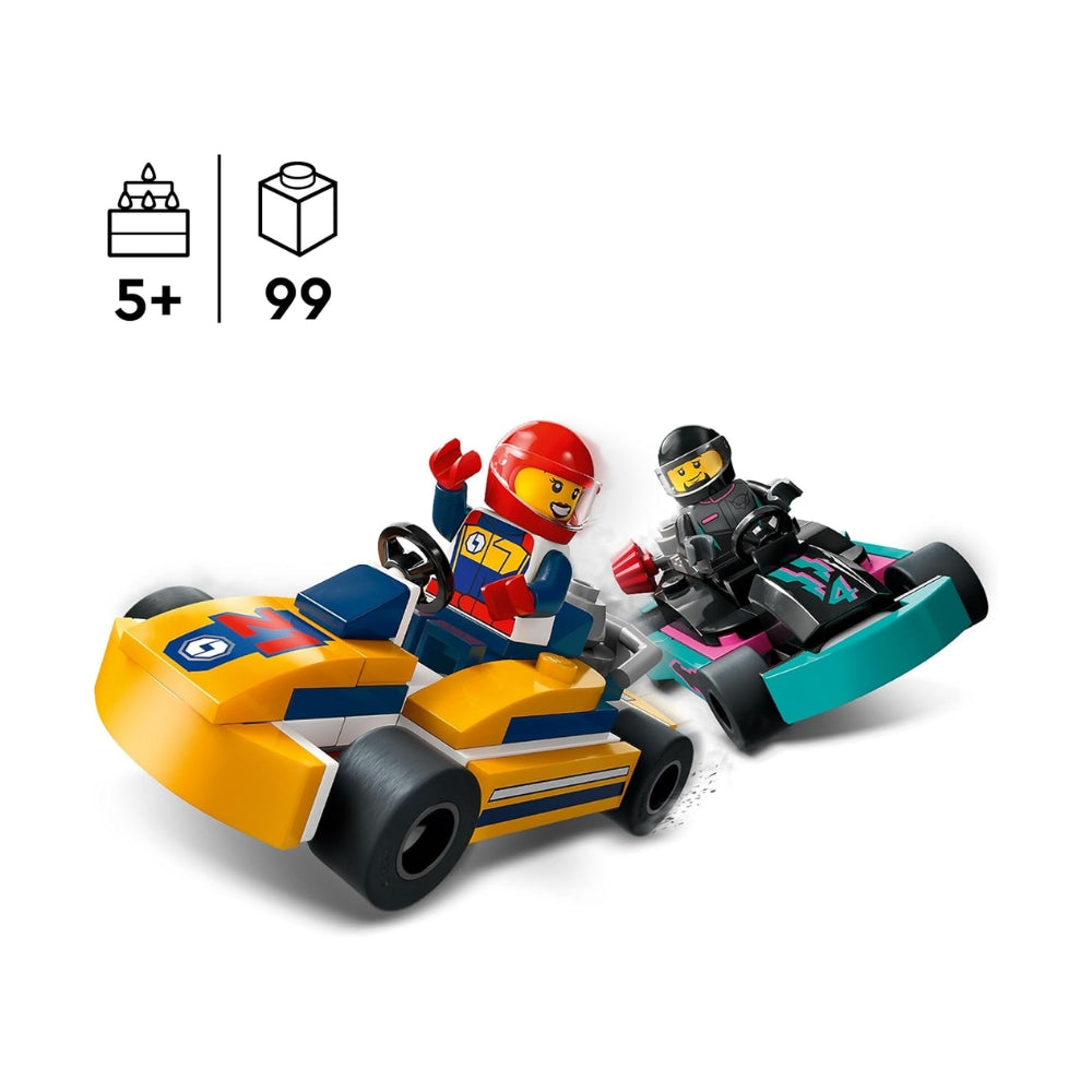 LEGO City Go-Kart e Piloti, Modellini da Costruire di Mini Go Kart da Corsa con 2 Minifigure di Piloti, Veicoli Giocattolo per Bambini e Bambine da 5 Anni in su, Regalo Divertente 60400