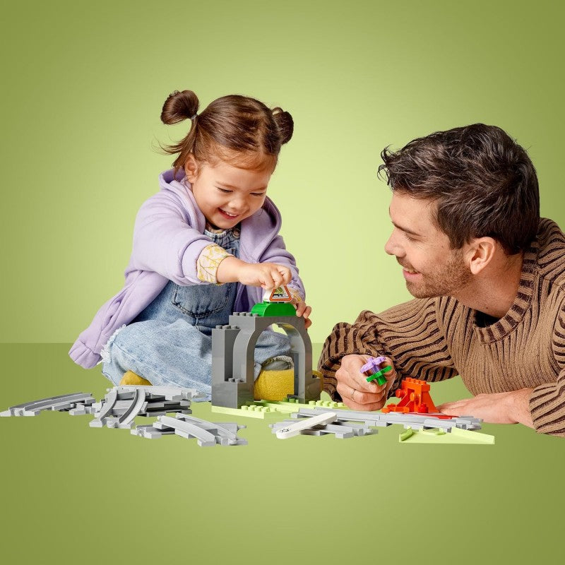 Set di binari LEGO DUPLO per treno giocattolo per bambini e bambine da 2 anni: con il gioco educativo il Pack di Espansione Tunnel e Binari Ferroviari, i piccoli possono ampliare le loro avventure con i treni LEGO DUPLO sviluppando preziose abilità