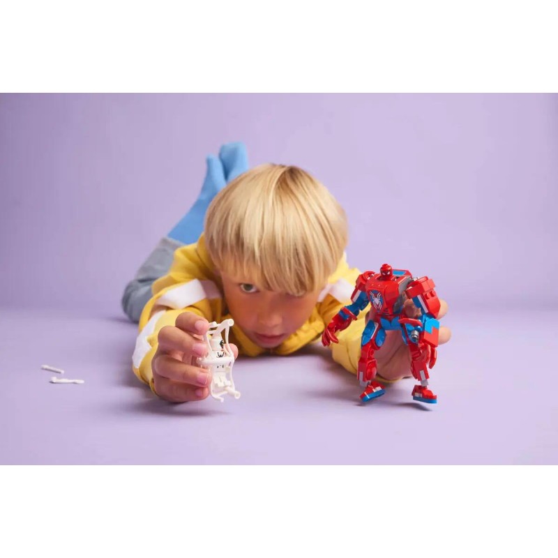 il mech LEGO Marvel è dotato di braccia, gambe e dita mobili e il busto si apre per rivelare una cabina di guida che può contenere la minifigure di Spider-Man
