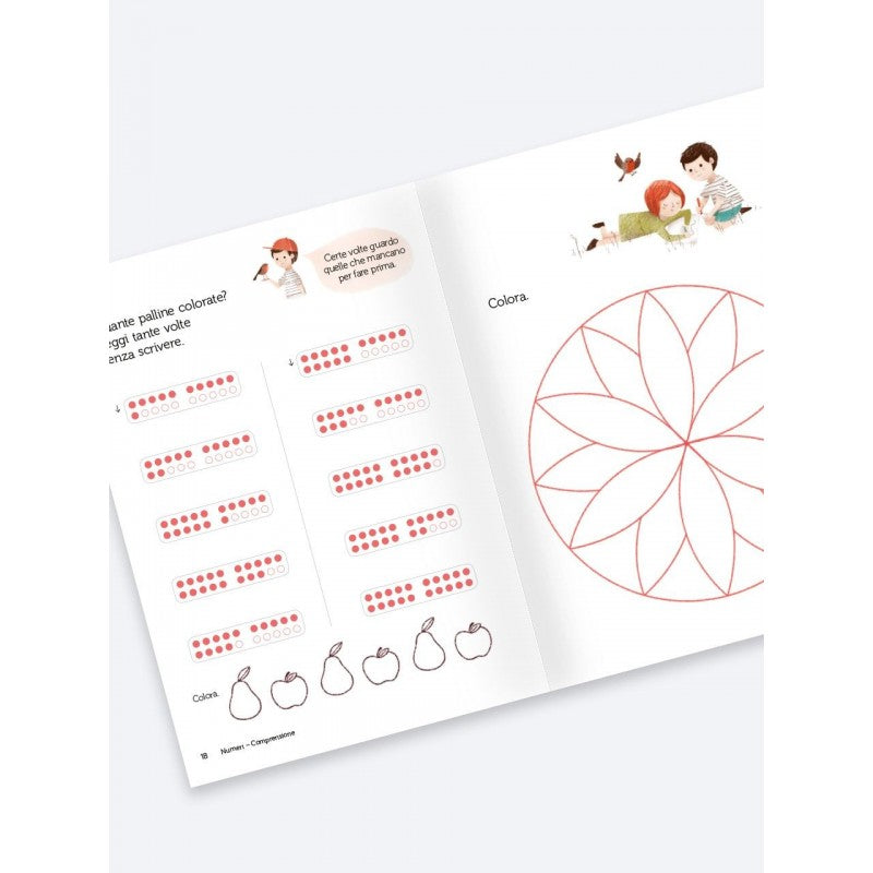 Il libro a colori presenta l’itinerario da svolgere giorno per giorno per raggiungere le competenze previste dal programma di matematica sui numeri entro il 20 (ma anche oltre fino al 100 e al 1000) e propone addizioni, sottrazioni, problemi. Cornicette e mandala aiutano a rilassarsi dopo l’impegno e la fatica.