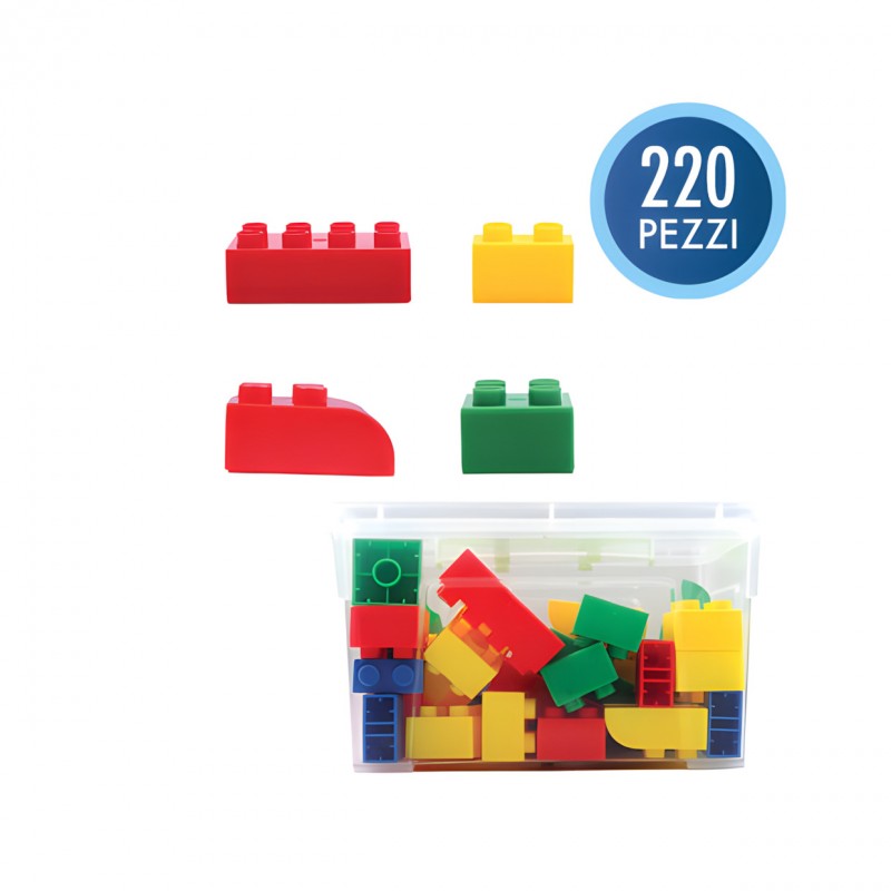 220 pezzi colori assortiti: Il set include 220 pezzi distinti in colori diversi, consentendo ai bambini di creare una vasta gamma di costruzioni diverse.