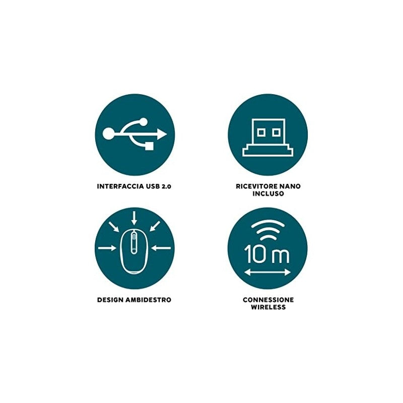 - Ricevitore USB ultra compatto posizionabile all'interno del mouse per un pratico trasporto, incluso nella confezione