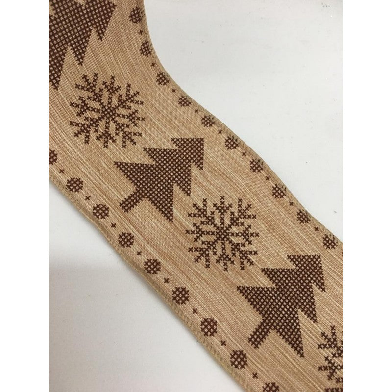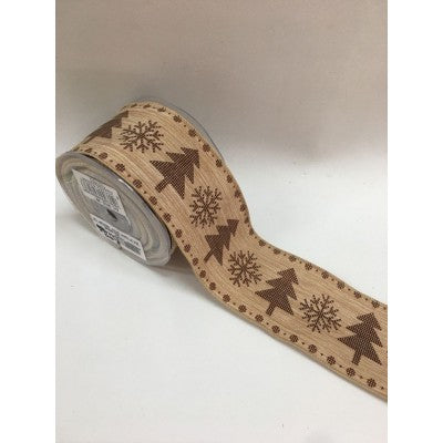 nastro natalizio, decorato con abeti e fiocchi di neve, dai colori bruni, renderà il tuo pacco regalo ancora più speciale