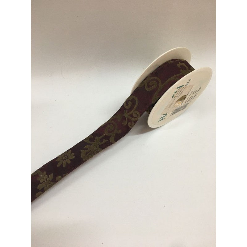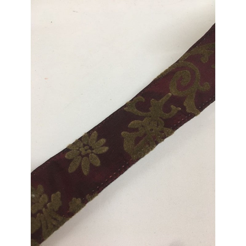 NASTRO IN VELLUTO PRUGNA CON DECORAZIONI MARRONI