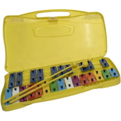 Glockenspiel con note colorate per un migliore apprendimento della musica. Include valigetta in plastica per il trasporto con scanalature per la risonanza dei tasti.