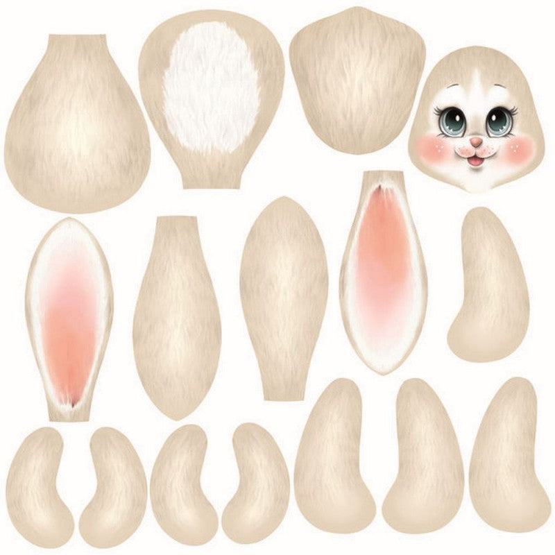 Ora non ti resta che incollare o cucire a mano le varie parti per assemblare Sonny il Coniglietto.