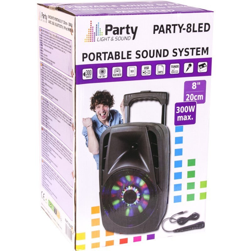 Party-8led - Diffusore Audio Portatile Con Usb, Bluetooth, Fm & Mic - 8"/20cm - 150 Watt Rms