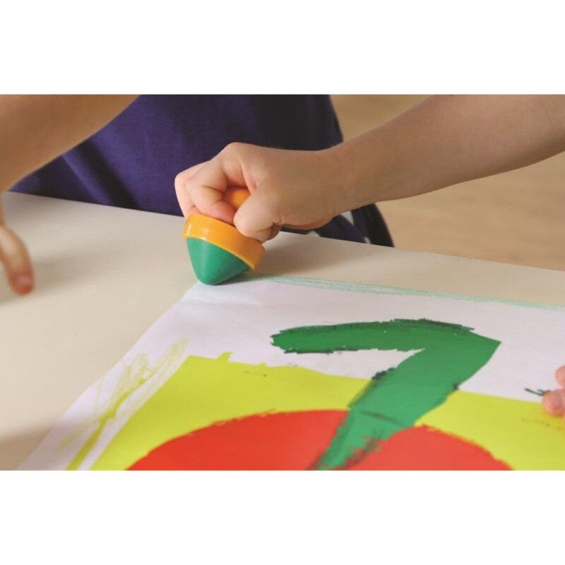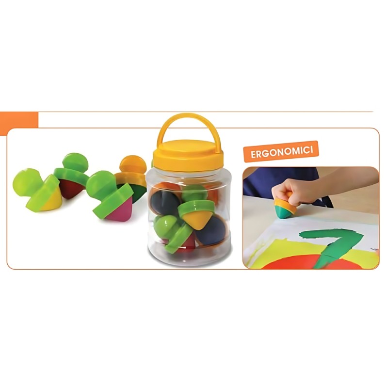 Pastelloni a cera ergonomici con pomello, colori assortiti. Adatti ai bambini più piccoli grazie al pomello che ne favorisce la presa.
